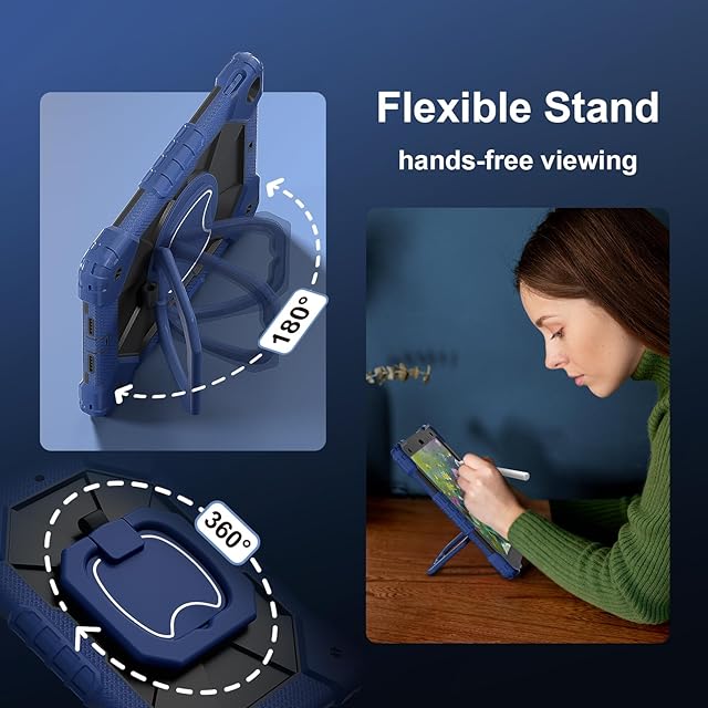 【多視野角 】360度回転可能なキックスタンドは、タイピングや視聴に最適な位置を提供します;エルゴデザインに基づいた快適なバックハンドルを使用すると、タブレットを片手でしっかりと握ることができ、安心して落とすことがないです。