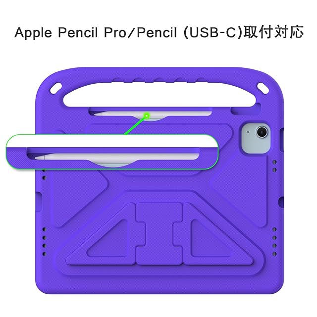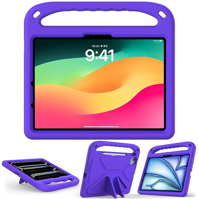 Aokil For iPad Air 11インチ (M3/M2、2025/2024) ケース iPad Pro 11インチ (M4) 2024 用カバー 汎用ケース 子供向け 無毒性EVA製 耐衝撃 軽量 持ち手付き スタンド機能 Pencil Pro/USB‑C完全対応 取り付け簡単 耐久性 可愛い お子様安心できるデザイン-(パープル)