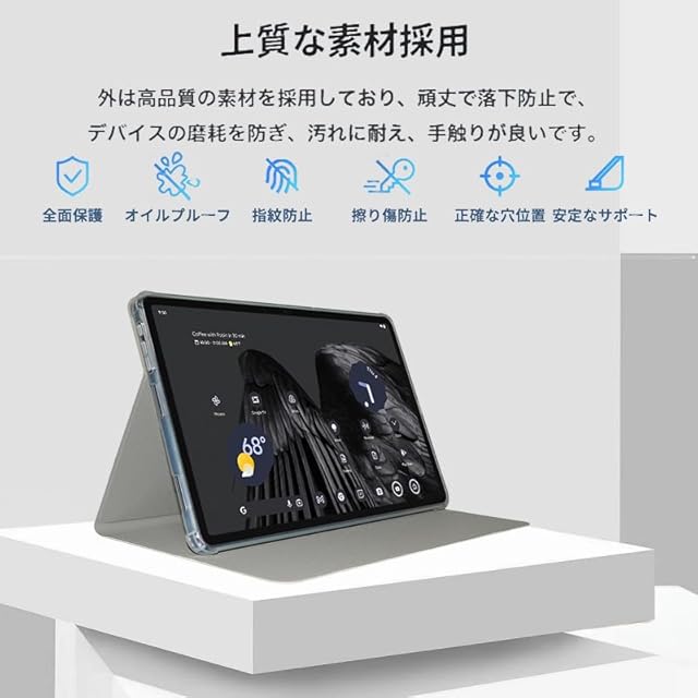 【高品質な素材】製品の表面は高級素材を採用し、耐久性、効果的に傷を防ぐことができます、優れた防汚効果。通気性が良く 内側はマイクロファイバー素材を採用し、肌触りが良く。柔らかい PU 素材がタブレットを包み込み、360°包括的な保護を実現します。