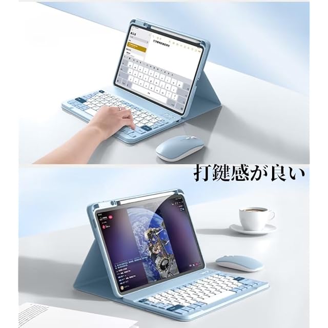 ★ ペンシル収納可能:iPadケースの上部にペン収納スペースあり、アップルペンシルを収納しながら充電対応、ペンの取り出しも易くて使い勝手がよい。カラーバリエーション豊富、持ち運び便利、ビジネスや学生たちにお勧めの可愛いキーボードケースマウスセットです。★※ペンとタブレットは付属しません。