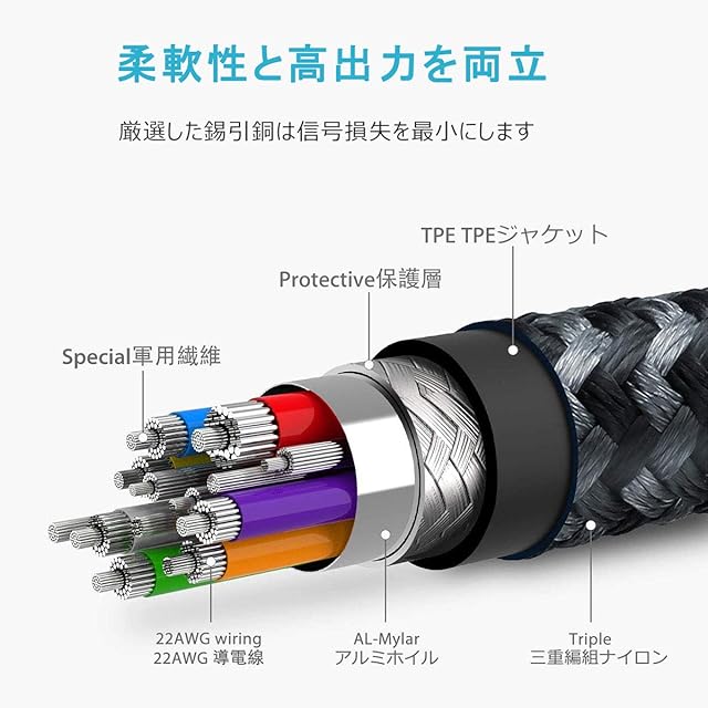 【高い耐久性】アルミニウム製のシェルとナイロン製の編組ジャケットは、より頑丈なusb c ケーブルを構築します。特別なストレインリリーフ設計、10,000曲げ試験に耐えることができます。それは柔軟なプル耐性、柔らかく、軽く、より耐久性があります。