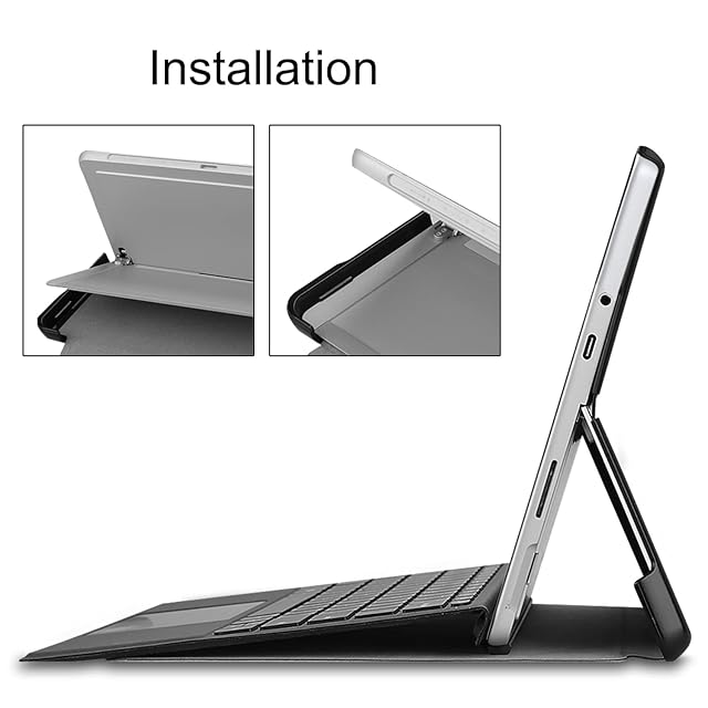 Microsoft Surface Pro 8 (13 インチ) ケース マイクロソフト サーフェス プロ8 用【ELMK】軽量 薄型 PU レザー スマート カバー 耐衝撃 傷防止 クリア ハード 背面 ケース 二つ折り スタンド 機能 (ブラック)