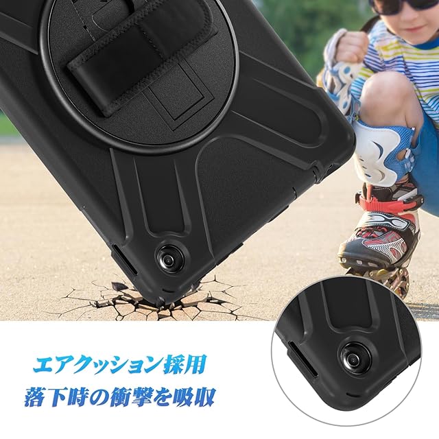 Doo Fi-re HD-10/Fi-re HD-10 Plus 2023 10.1インチと互換性があるケース Fi-re HD-10 第13世代 ショルダーケース 耐衝撃 米軍MIL資格 360度回転スタンド 調節可能ハンドストラップと肩掛けー付き 三層構造 カメラ保護 防塵 衝撃吸収 Fi-re HD-10/HD-10 Plus 第13世代 カバー 現場用(ブラック)