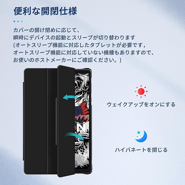 【スタンド機能●オートスリープ機能】スタンドタイプなので、横置きにも対応できます、お好きな角度で動画視聴、読書、WEB、タイピングなどに大変便利で、またはマグネット内蔵、オートスリープとオートウェイクアップ機能も付きます。