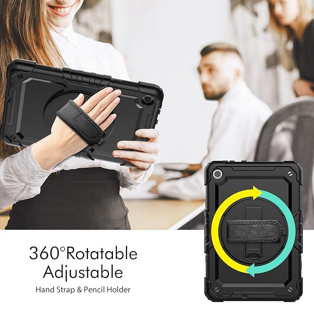 【MYH】For 2022モデルLenovo Tab M10 10.1インチ(TB-328F/TB-328FU/TB-328XU)ケース内蔵保護フィルム Lenovo Tab M10(3rd Gen)/ZAAE0009jp 360度回転スタンド機能付調節可能ショルダーストラップタブレットPCケース三層保護 三重構造 生活防水 耐久防塵 丈夫 頑丈 傷つけ防止 仕事 工事用 全面保護カバー(ブラック)