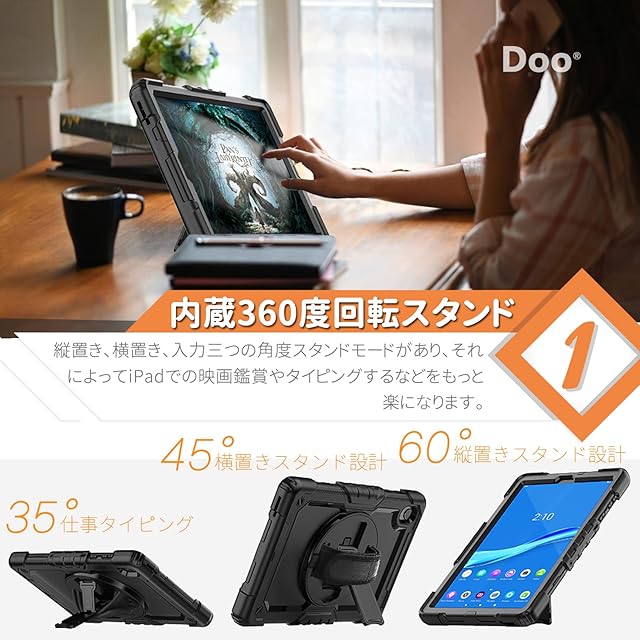 ⭐スタンドとハンドホルダー:調整可能なハンドストラップと折りたたみスピンデザインのキックスタンドは(スタンドは回転盤に伴って360°旋転し、異なる立つ角度を実現できます)、仕事、勉強、旅行中にタブレットをより柔軟かつ便利に使用する方法を提供します。ハンドホルダーを使用しながら操作する事により、落下の危険を軽減する事が出来ます。柔らかハンドストラップは屋外旅行や仕事、子供とゲームをする時にあなたのケースを使いやすいです。