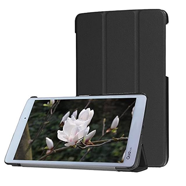 PauTion Qua tab PX ケース au Qua Tab PX LGT31 カバー 三つ折スタンド スマートカバー 傷つけ防 PUレザー (Qua tab PX, ブラック)
