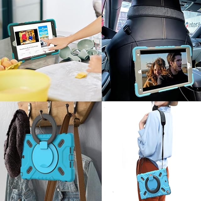 【360°回転キックスタンドとハンドル】 折りたたみ可能なスタンドで、横向きでも縦向きでも異なる視野角に対応。 タブレットをあらゆる場所に置くのに便利です。 持ちやすいハンドルデザインは、持ち運びにも吊り下げにも適しています。