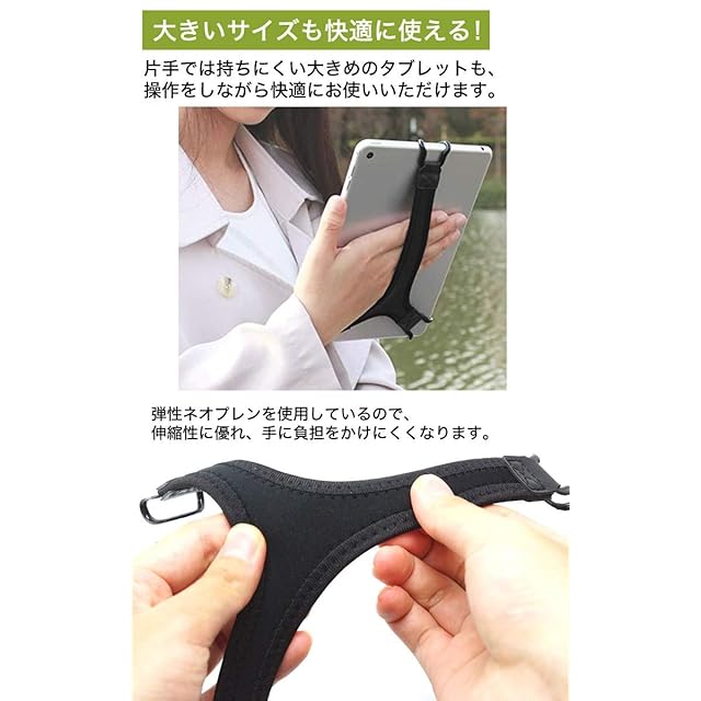 KOYOKOMA ipad タブレット 落下防止 3点固定 フック ベルト ワンタッチ かけるだけ セーフティーベルト タブレットベルト 伸縮 ハンドストラップ (大サイズ)