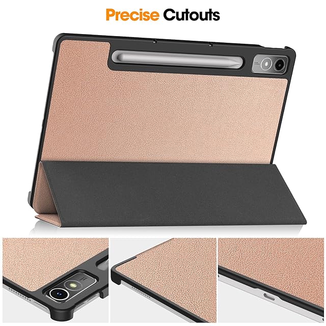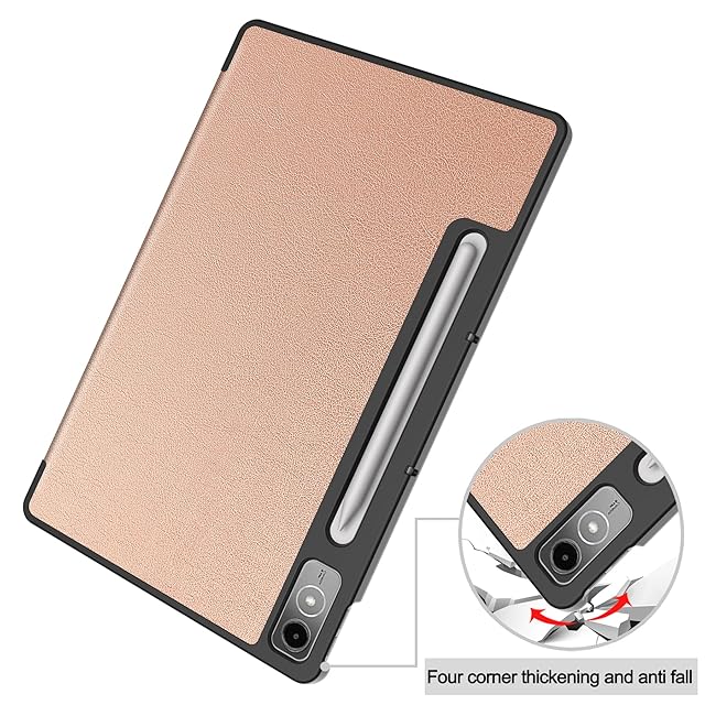 For Lenovo Tab P12 ケース [Gosento] 軽量 薄型 三つ折スタンドケース Lenovo Tab P12 カバー [ローズゴールド]