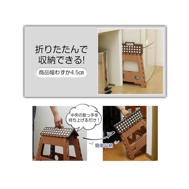 ●商品紹介 ・折りたたみみ式の踏み台なので、使わない時は隙間に収納 ・取っ手が付いているので、持ち運びも楽々