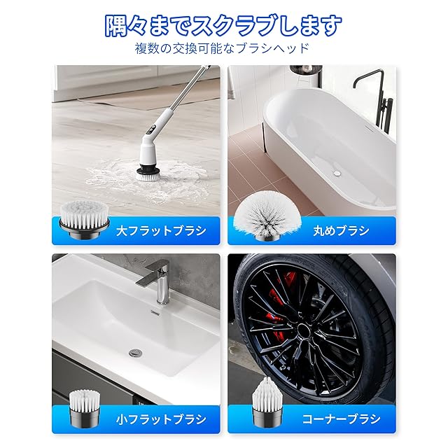 電動お掃除ブラシセット 取り替え4つのブラシ付属 電動お風呂掃除 ブラシ IPX7防水 床 窓 壁 台所 玄関の掃除 浴槽磨き 車の研磨機 母の日 ギフト プレゼント ブラシセット