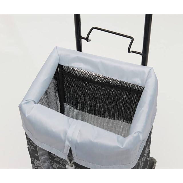 商品説明:お買い物に便利なショッピングカートです。重たい荷物もらくらく運ぶことができます。内側には保冷効果のあるアルミ蒸着フィルムを使用しており、食料品のお買い物に最適です。