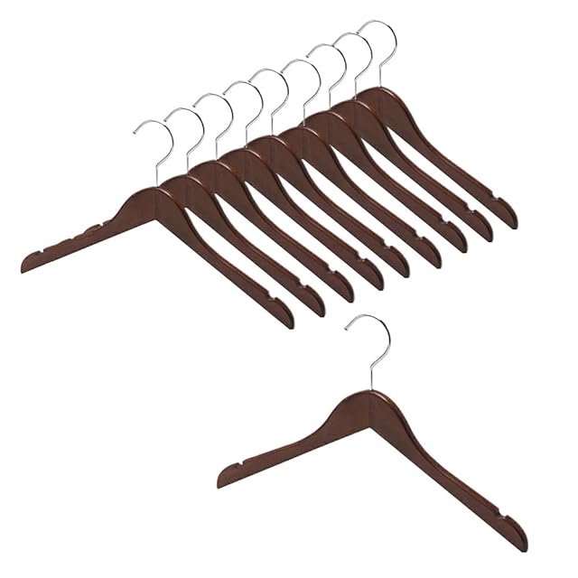 【高品質】徹底した品質管理を行い、高品質で上質な天然木によって作られた木製ハンガー。木材の割れやバリや光沢の剥げなどの不良点の有無の細かくチェックして不良品を極力排除しております。味わい深い雰囲気でクローゼットに統一感を生むダークブラウン塗装の木製ハンガー。
