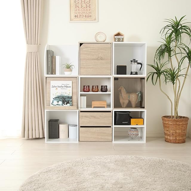 【材質】プリント紙化粧パーティクルボード、扉:5mm強化ガラス