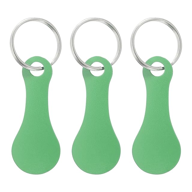PATIKIL ショッピングトロリートークンキーリング 3個入り2.2"ステンレススチールカートリムーバーアンロックリリースキーチェーン 緑