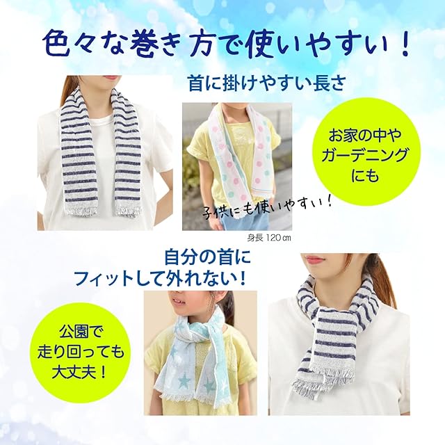 【 首に巻ける使いやすいサイズ 】 首から下げるだけで涼をとることができ、熱中予防に役立ちます。 お買い物やお散歩、ガーデニング 屋外での スポーツ スポーツ観戦 や レジャー BBQ などの 暑さ対策 に。