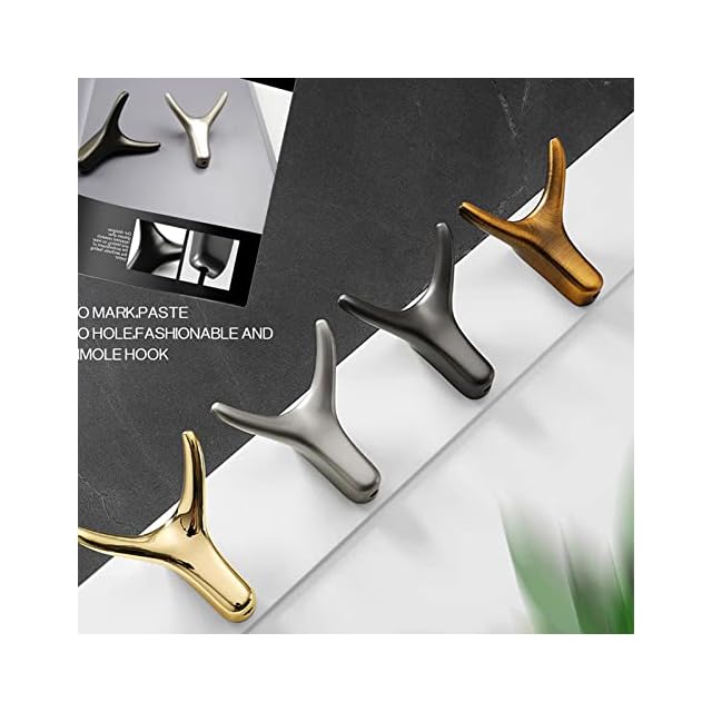 Dekori 壁掛けフック ウォールハンガーおしゃれ ウォールフック 壁整理フック 北欧風鹿の角 壁飾りコート 洋服帽子掛け 吊り下げ収納 落下防止 ネジ付きドアフック 玄関 浴室 寝間 台所 キッチン 店舗 省スペース 取付け簡単 雰囲気を変える 2点セット ゴールド