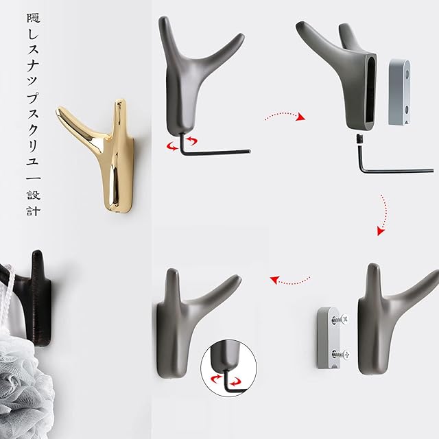 【多様な用途】オフィス、教室、家、玄関、リビングルーム、バスルーム、キッチン、ランドリー、ショップ、コーヒーバー、どんな場所にも完璧にフィットできる壁掛けフックです。ジャケット、コート、マフラー、帽子、傘、タオル、鍵やバッグ、ペット用品などを掛けることができるウォールハンガーで、整理整頓ができます。