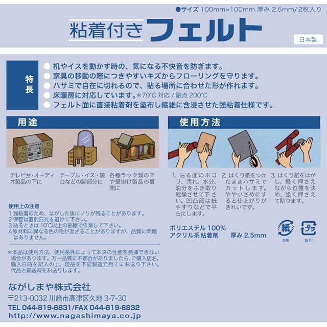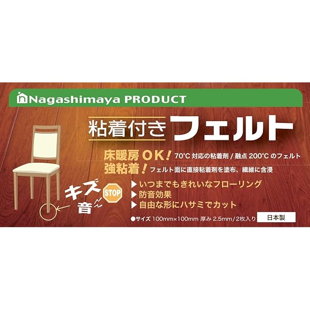 ながしまや株式会社 フローリング傷防止 粘着付きフェルト 100×100mm 2枚入り ダークブラウン