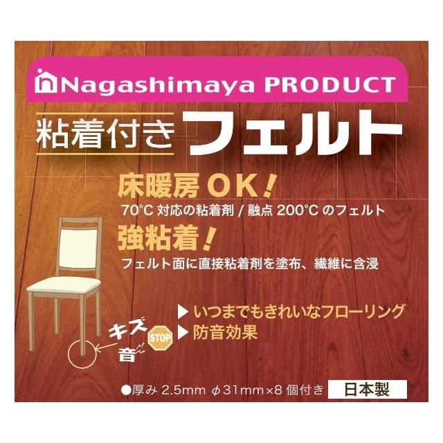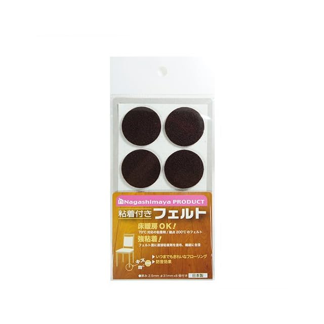 ながしまや株式会社 フローリング傷防止 粘着付きフェルト 直径31mm×8個付き ダークブラウン