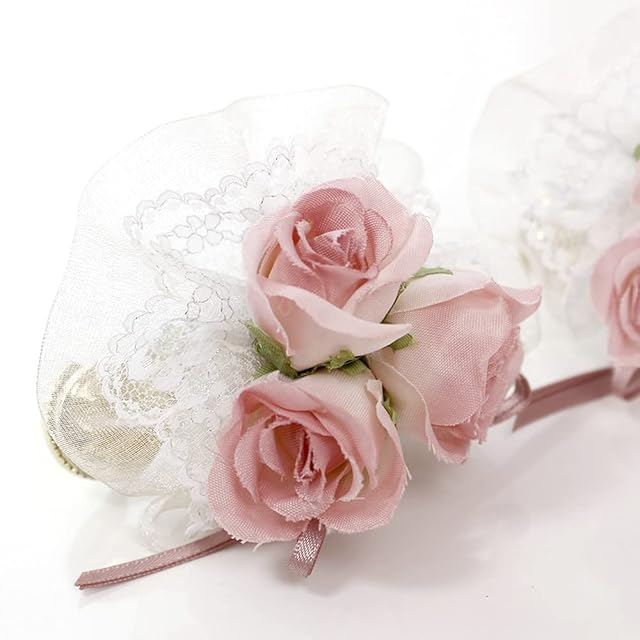 つぼみの薔薇を3輪合わせてラメレースとオーガンジーで囲んで花籠のイメージしたカーテンクリップです