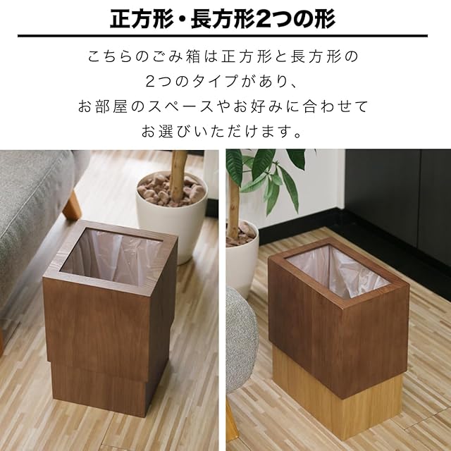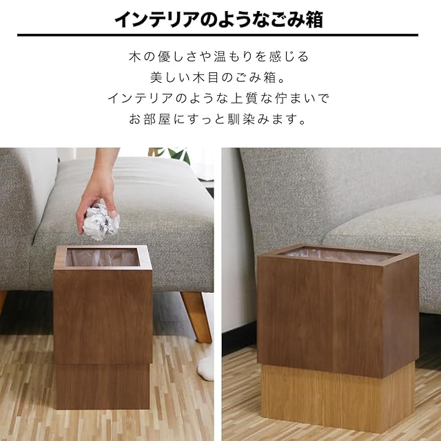 ottostyle.jp ごみ袋がはみ出さない 木製ごみ箱 12L 【正方形/ダークブラウン×ダークブラウン】 ダストボックス コンパクト リビング くず入れ ゴミ入れ