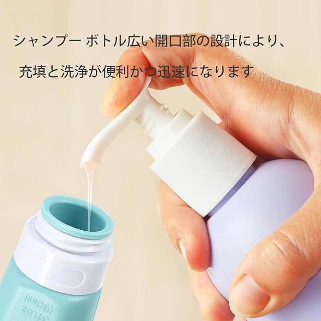 【詰め替え可能でお手入れが簡単シャンプーボトル 旅行用】シャンプー 詰め替えボトル特徴的な広い開口部のデザインにより、さまざまな液体を簡単に充填でき、ブラシでシリコンボトルの内側を簡単に掃除できるため、無駄なく最後の一滴を得ることができます。 休暇、飛行機旅行、キャンプに最適です。