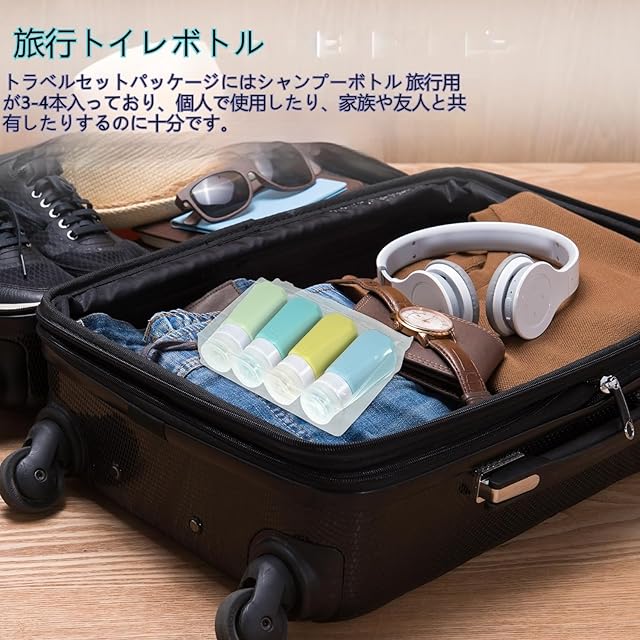 【漏れ防止シャンプーボトル】シャンプーボトル トラベル漏れ防止設計により、液体の漏れやこぼれを防ぎ、荷物や衣類を保護し、輸送中に液体が安全に保管されるようにします。