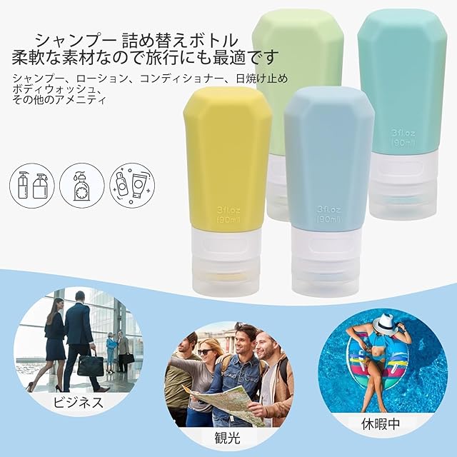 詰め替えボトル 90ML化粧水 漏れ防止 機内持ち込み可 携帯用小分けボトル4PCS