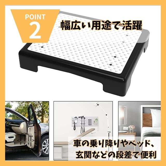 【車の乗り降り用】9.5cmという高さがちょうどよいので、乗降がスムーズになります。片手で持てるほど軽いので、自動車に積むことができます。雨の日もゴムによりちゃんとグリップするので安心して使えます。