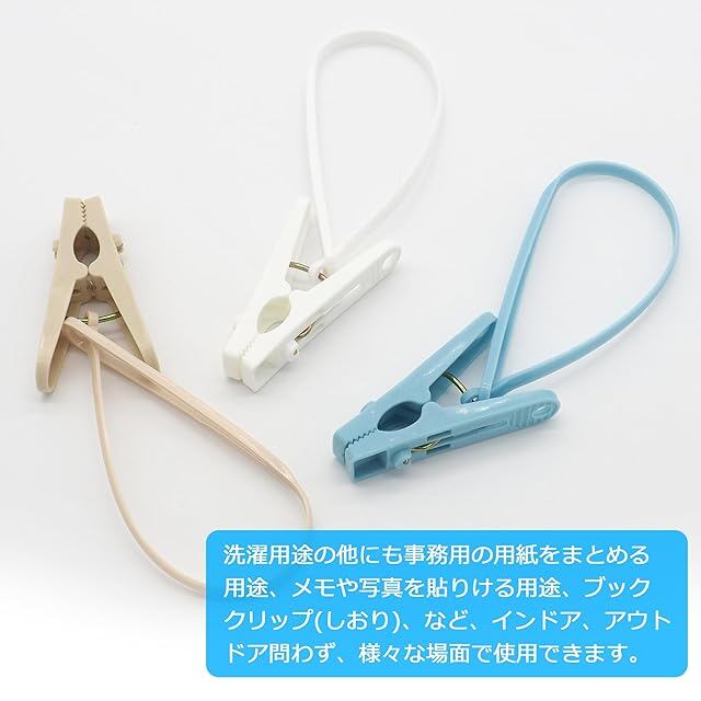 洗濯用途の他にも事務用の用紙をまとめる用途、メモや写真を貼りける用途、ブッククリップ(しおり)、など、インドア、アウトドア問わず、様々な場面で使用できます。
