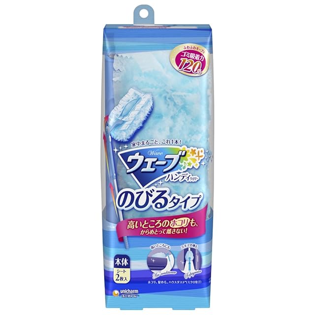 ウェーブ ハンディワイパー 掃除用 のびるタイプ 本体 1本+取替えシート 2枚