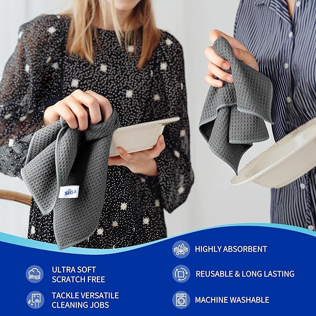 多用途なふきん: ワッフル調クリーニングクロスが、汚れやほこり、食べこぼしをかき出す力を高め、掃除能力を向上させます。それだけでなく、銀食器やグラスに付着した指先を効果的に取り除きます。