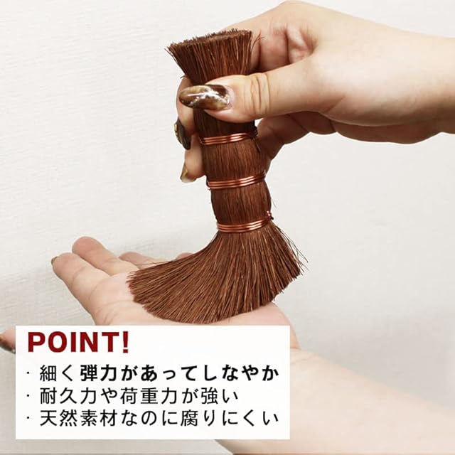 棕櫚に使われる材料の棕櫚の木は、ヤシ科の木です。棕櫚箒の原料の棕櫚皮の繊維は、数ある天然繊維の中でもすぐれた性質があり、弾力がありしなやかです。耐水性と耐久性に優れています。