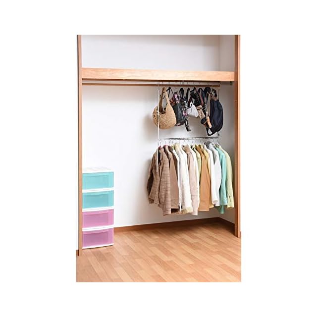 スペースはそのままに、ブランコ型のハンガーで2段ハンガーに変身今あるハンガーに引っ掛けるだけで収納力が大幅にアップします。 ハンガーバーの高さを調節できるから、上下ジャケット掛けも可能です。 幅は無段階、高さは45〜100cmの間で11段階に調整可能。 出荷日について ご注文後、1~2日頃に(土、日、祝日を除く) 配送について 北海道、沖縄、離島の方は別途が掛かります。 在庫状況について 予告なく在庫切れになる場合が 御座いますので予めご了承ください。