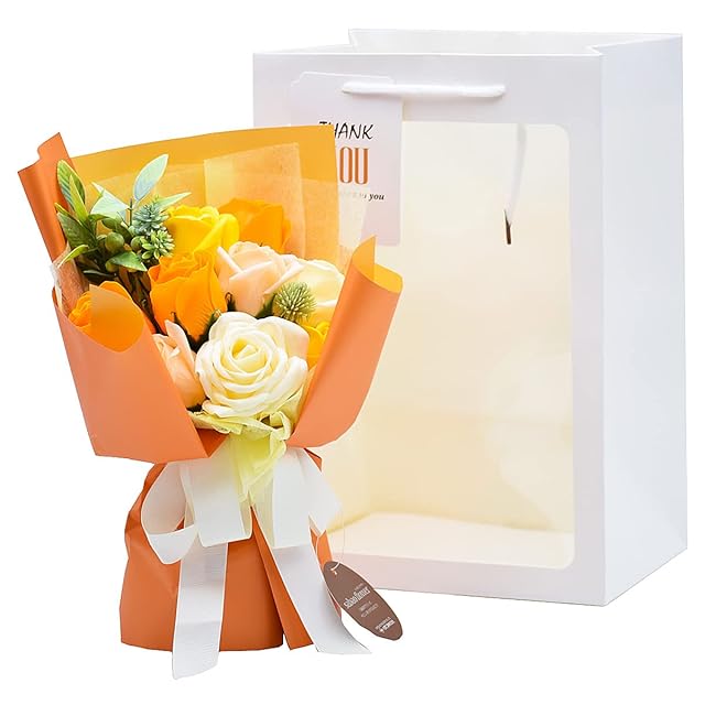 商品名:【松野工業】スタンドキュートシャボン 9輪 ブーケ ソープフラワー 花束 石鹸のお花 自立可能 プレゼント ギフト (オレンジ)