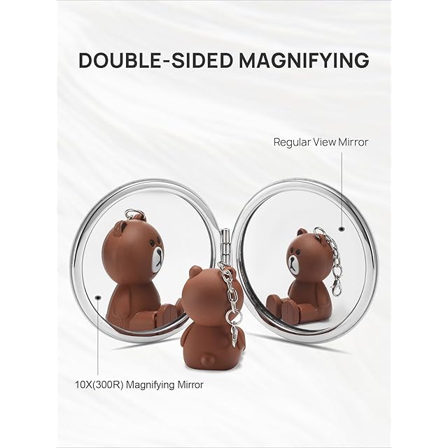 1倍/10倍倍率:化粧用に適した両面ミラー。 メインミラーは顔全体の鮮明な画像を完全に反射し、反対側は10倍拡大され、マスカラ、ピンセット、摘採、フロスなどの適用に最適です。