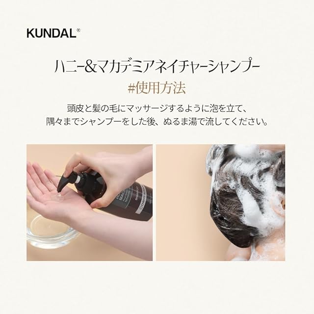 ハニー&マカダミア総10,000ppm配合とノンシリコンKUNDALシャンプー