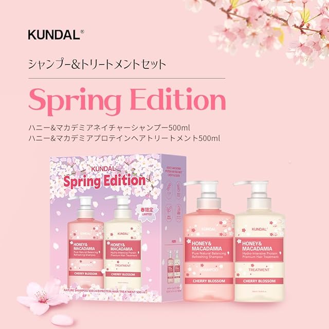 【クンダル】シャンプー 500ml&トリートメント 500ml スプリング·エディションヘアケアスペシャルセット#チェリーブラッサム KUNDAL SHAMPOO TREATMENT Spring Edition #Cherry Blossom