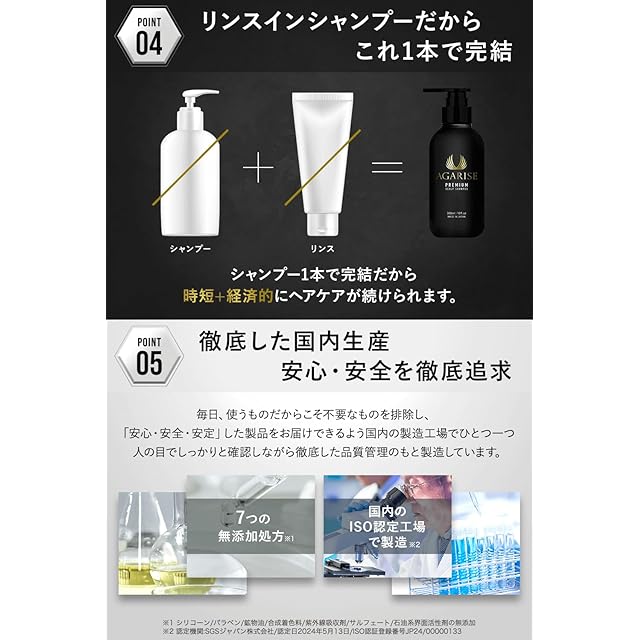 AGARISE( アガライズ )濃密泡 プレミアム スカルプ ケア シャンプー リンスイン 毛穴 洗浄 アミノ酸 メンズ シャンプー ノンシリコン 日本製 300ml (1個)