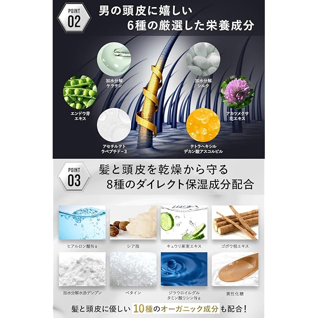【全髪質・全頭皮タイプにオススメ】アミノ酸系洗浄剤の超濃密泡が頭皮に優しく汚れを洗浄し、オーガニック成分やリンス成分が傷んだ髪もしっかりと保護し指通りなめらかに。男女問わずお使いいただけるスカルプシャンプーに仕上げました。