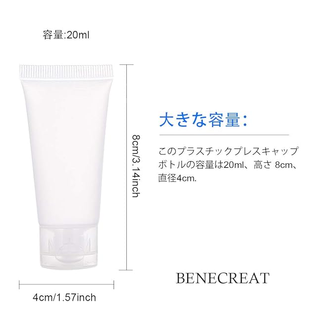 BENECREAT 30個セット20mlプラスティックチューブ フリップキャップ 艶消し 携帯易い コスメ小分けボトル 詰め替え