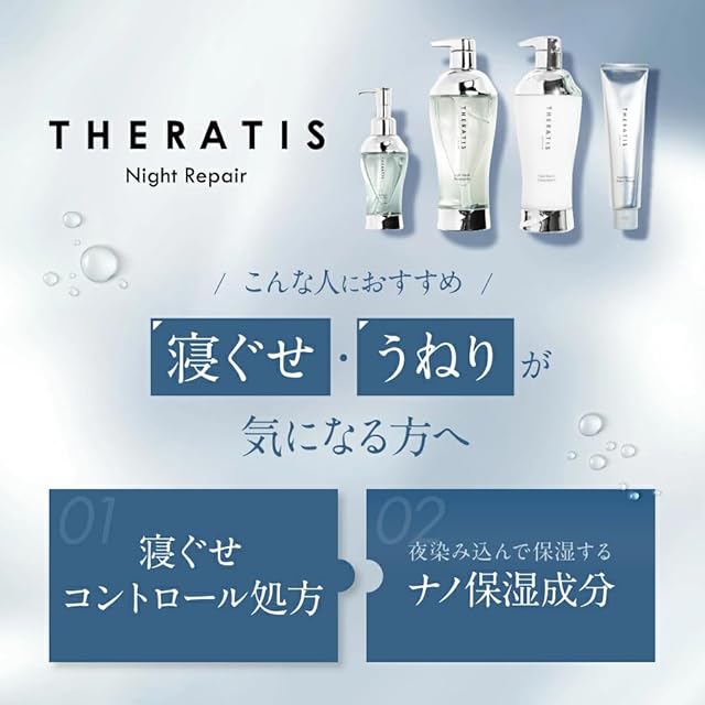 THERATIS TERA|テラ【コラーゲン1兆個(*1)最高峰(*2)ナイトケア】私が変わる、うるツヤ美髪整形(*4) *1製品に配合しているリポソーム成分(*4)の数量 *2当社既存品内(THERATISシリーズ内) *3髪の質感(しっとり感、つややかさ)を整える *4加水分解コンキオリンタンパク、加水分解コラーゲン、加水分解ダイズエキス(全て保湿)をリポソーム化したもの