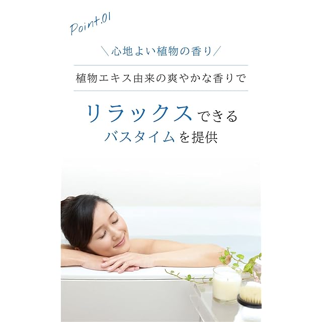 【心地よい植物の香り】 植物エキス由来の爽やかな香りが、リラックスできるバスタイムを提供します。