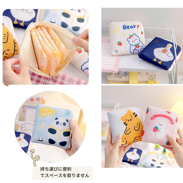 小物入れ ポーチは、生理用ナプキンを収納できるだけでなく、リップクリーム、化粧品、ミニミラー、小物のアクセサリー、鍵、現金、クレジットカードなど、女の子や女性向けの小物を収納できます。
