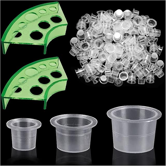 Moricher タトゥーインクキャップ カップホルダー2個付き 300個 Sサイズ 100個 M 100個 Lサイズ タトゥーインクカップ + カップホルダー 2個 タトゥーインク パーマネントメーキャップ用 タトゥーアクセサリー