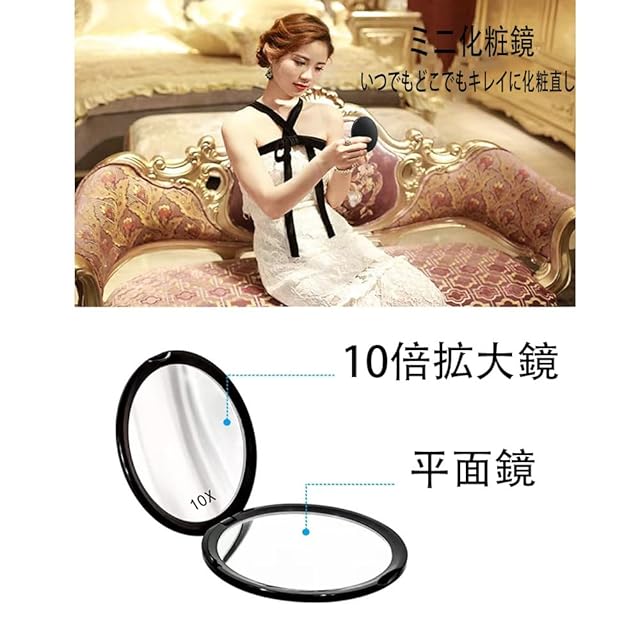 商品名:コンパクトタイプ10倍拡大鏡、2面鏡、デスクトップ化粧鏡、拡大鏡、化粧両面鏡、ハンドヘルドミラー、携帯型、折りたたみやすく、丸み(ブラック)
