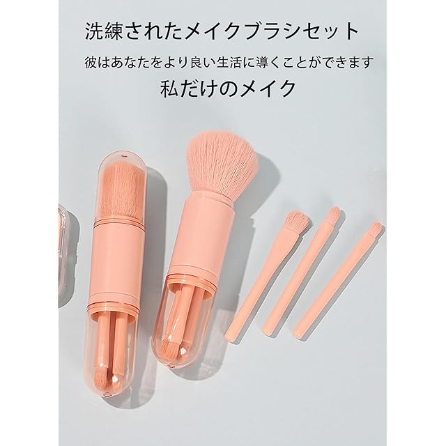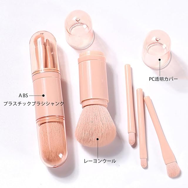 LeTradeJP メイクブラシ ト肌の色4本携帯 ブラシ パウダーブラシ 化粧筆 セット フェイスパウダーブラシ化粧筆,敏感肌適用 カプセル ブラシ セット 多機能 携帯便利