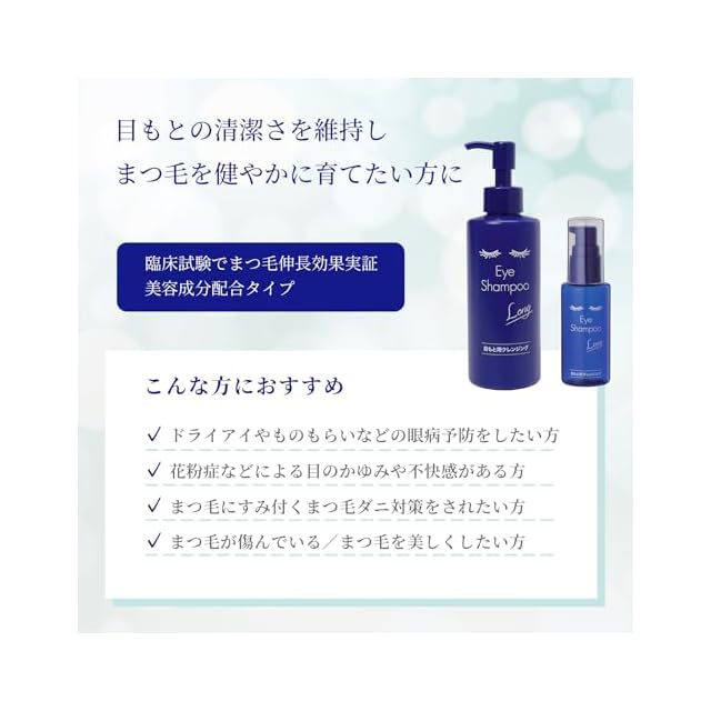 まつ毛・目もと専用シャンプー アイシャンプーロング 200ml まつエク対応 美容成分・ヒアルロン酸配合 美しいまつ毛に うるおい保湿 マイボーム腺洗浄 花粉対策